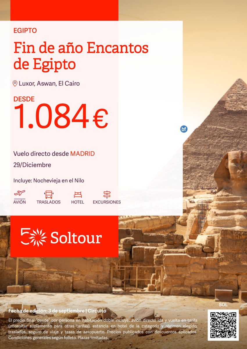 Fin de Año Encantos de Egipto desde 1.084€, salida 29 Diciembre desde Madrid