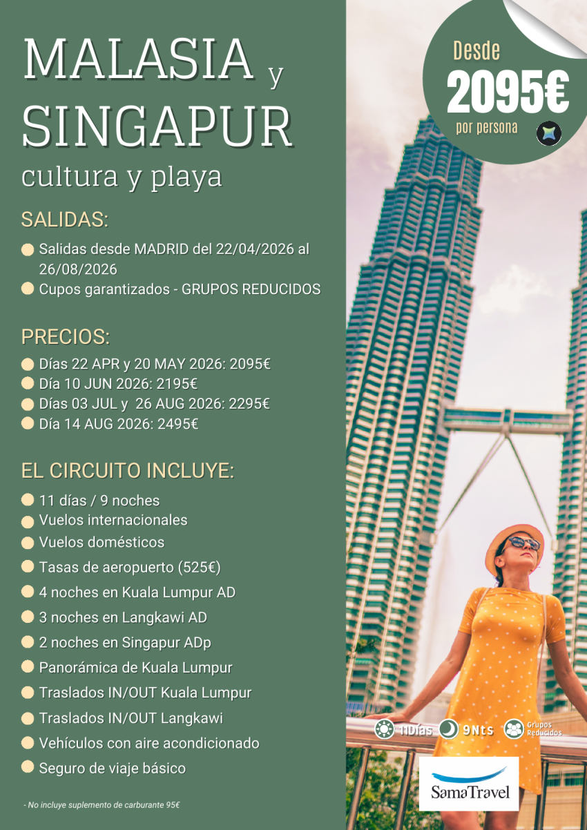 "Malasia y Singapur": Circuito 11 días visitas y playa (APR-AUG) [Cupos y precios Garantizados] *Desde 2.095€*
